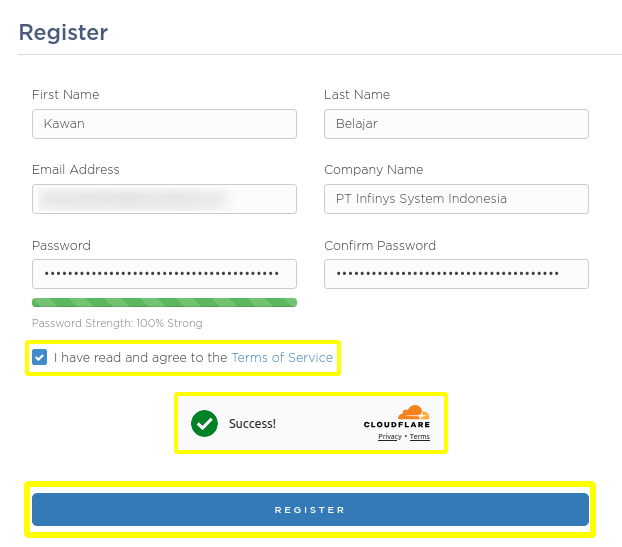 Jika semua data telah benar dan lengkap, klik tombol REGISTER.